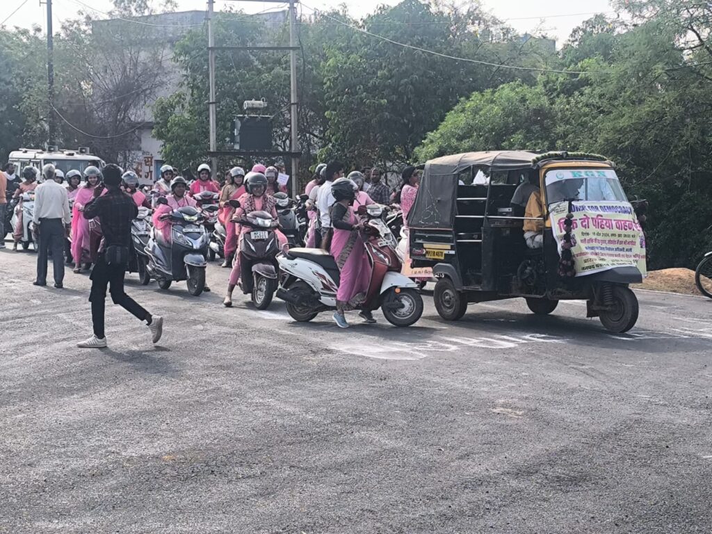 कटनी।लोकसभा चुनाव में मतदान करने के लिए लोगों को जागरूक करने के लिए कलेक्टर श्री अवि प्रसाद के निर्देश पर जिले भर में विविध आयोजन किये जा रहे है। जिसके लिए विभिन्न गतिविधियां संचालित की जा रही हैं। इसी क्रम में सोमवार सुबह शहर में पिंक दो पहिया वाहन रैली का आयोजन किया गया। लोगों ने दो पहिया वाहनों में सवार होकर तख्तियों पर लिखे स्लोगन के माध्यम से लोगों को मतदान करने का संदेश दिया। साथ ही वोट डालने का संकल्प लिया।जिला स्तर पर पिंक स्कूटी रैली का आयोजन कलेक्ट्रेट परिसर से किया गया। रैली कलेक्ट्रेट से होकर विश्राम बाबा गेट से तांगा स्टैंड तिराहा, माधवनगर, माधवनगर गेट, मिशन चौक, आजाद चौक, चांडक चौक, बस स्टैंड से आजाद चौक, शेर चौक, लक्ष्मी नारायण मंदिर, झंडा बाजार, सुभाष चौक, थाना तिराहा, पोस्ट ऑफिस, नगर निगम से होती हुई मिशन चौक पर समाप्त हुई। इसी तरह की पिंक दो पहिया वाहन रैली का भव्य आयोजन जिले के प्रत्येक नगरीय निकायों और विकासखण्ड मुख्यालय में भी किया गया।