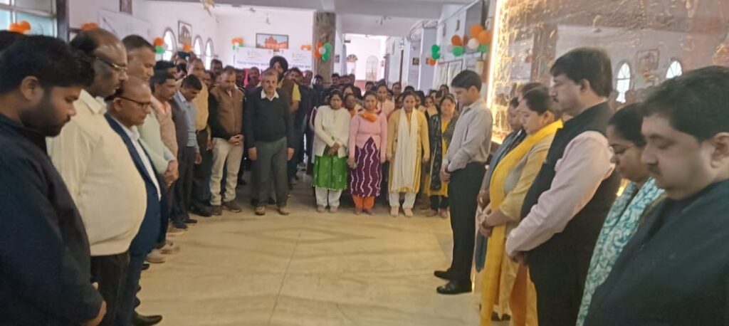कटनी । राष्ट्रपिता महात्मा गांधी की पुण्य तिथि 30 जनवरी के अवसर पर गुरुवार प्रातः 11 बजे जिले के सभीशासकीय कार्यालयों में स्वतंत्रता संग्राम के शहीदों की स्मृति में दो मिनट का मौन रखकर उन्हें श्रद्धांजलि दी गई।