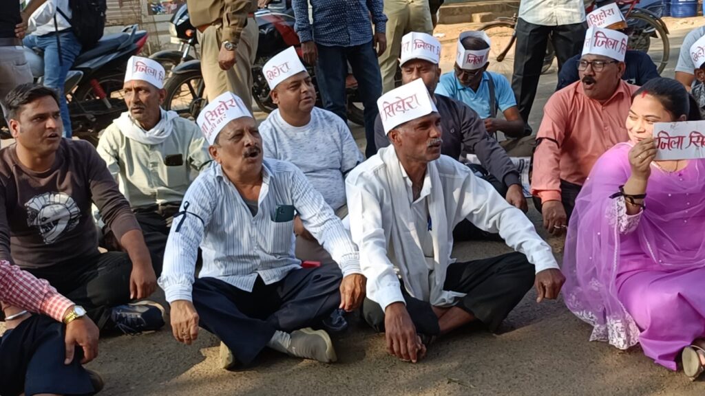 अपने पूर्व घोषित कार्यक्रम के अनुसार लक्ष्य जिला सिहोरा आंदोलन समिति के पदाधिकारी पहले बस स्टेंड स्थितअपने धरना स्थल पर एकत्र हुए।सभी प्रदर्शनकारियों ने सिर पर जिला सिहोरा लिखी टोपी और बाजुओं में काली पट्टीबांध विधायक कार्यालय की ओर रैली के रूप में रवाना हुए।