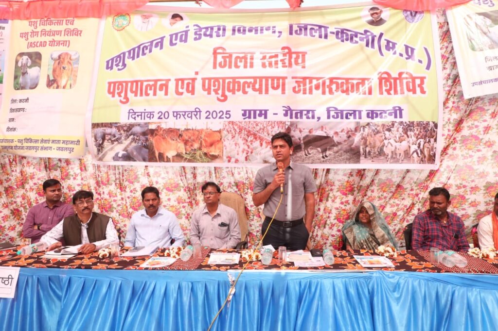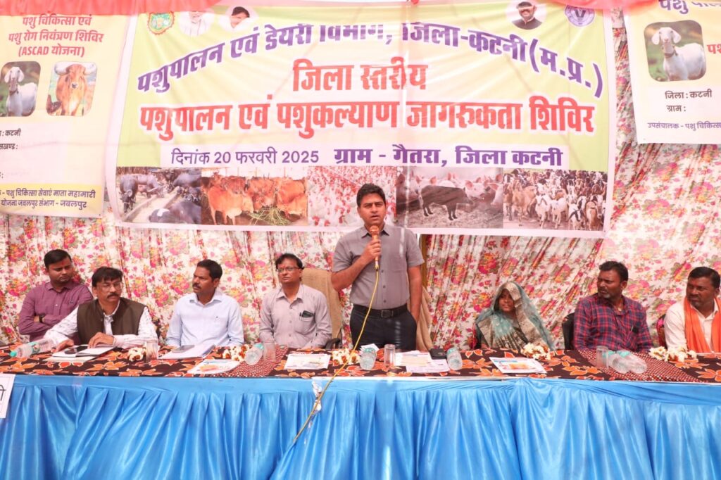 कटनी ।कलेक्टर श्री दिलीप कुमार यादव विकासखंड कटनी के ग्राम गैतरा में आयोजित जिला स्तरीय पशुपालन एवंपशु कल्याण जागरूकता शिविर में पहुंचे। इस दौरान एस डी एम श्री प्रदीप कुमार मिश्रा, उपसंचालक पशुपालन एवंडेयरी विकास डॉ आर के सोनी भी मौजूद है।